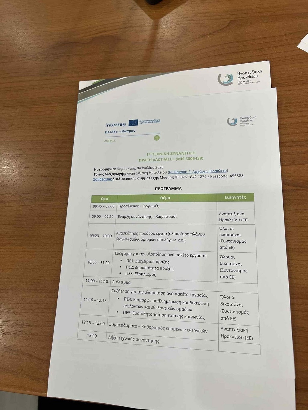 Με επιτυχία διεξήχθη η 1η τεχνική συνάντηση του ACT4ALL την Παρασκευή 04/07/2025 την οποία διοργάνωσε η Αναπτυξιακή Ηρακλείου στα γραφεία της στις Αρχάνες, στο Ηράκλειο.